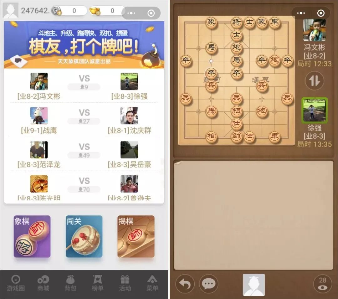 象棋,一种在中国有着悠久历史的棋类格斗游戏,如今你也能在QQ中「杀」一盘了迷你格斗游戏中提供更多「象棋」,「闯关」,「揭棋」三类型型因此在「象棋」中除了「人机对战」,也就是说你能在无网的情况下对决,你还能邀请好友对决,优先选择残局闯关等各种格斗游戏类型。