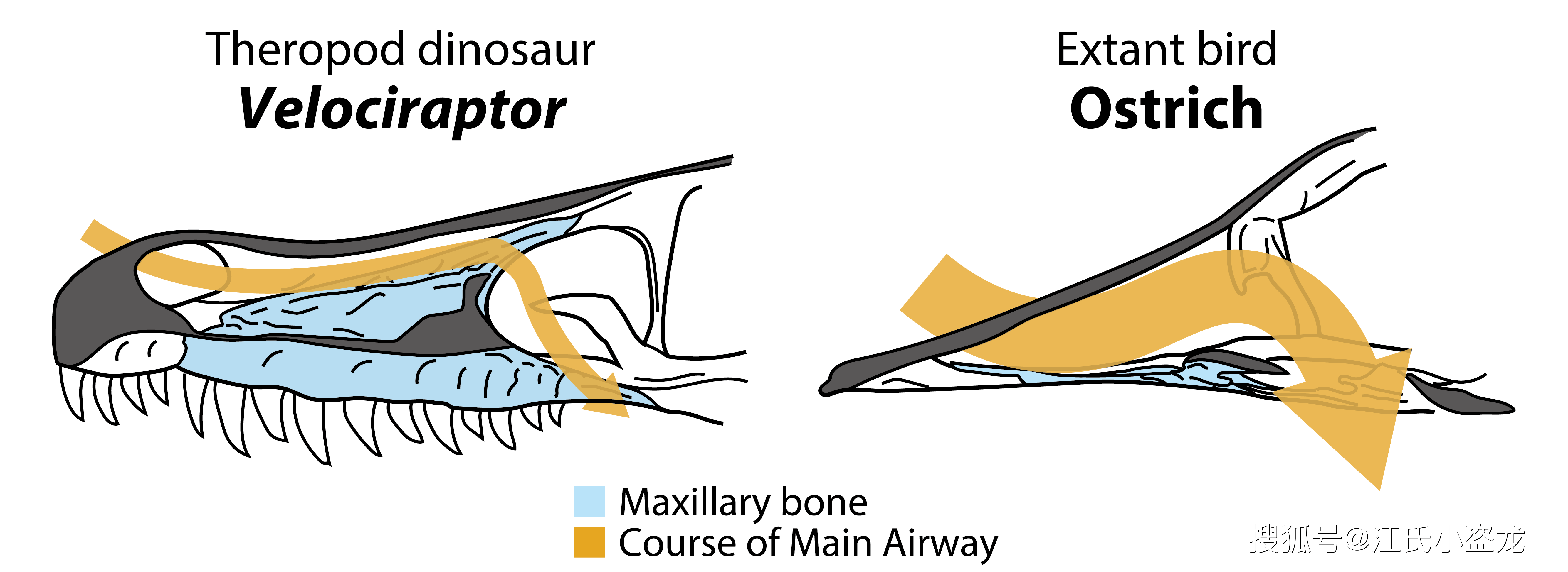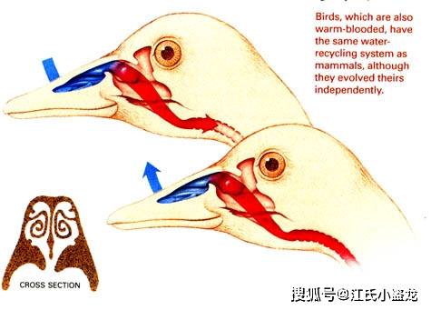 伶盗龙(左)与今天鸟类(右)的鼻腔结构及工作原理对比